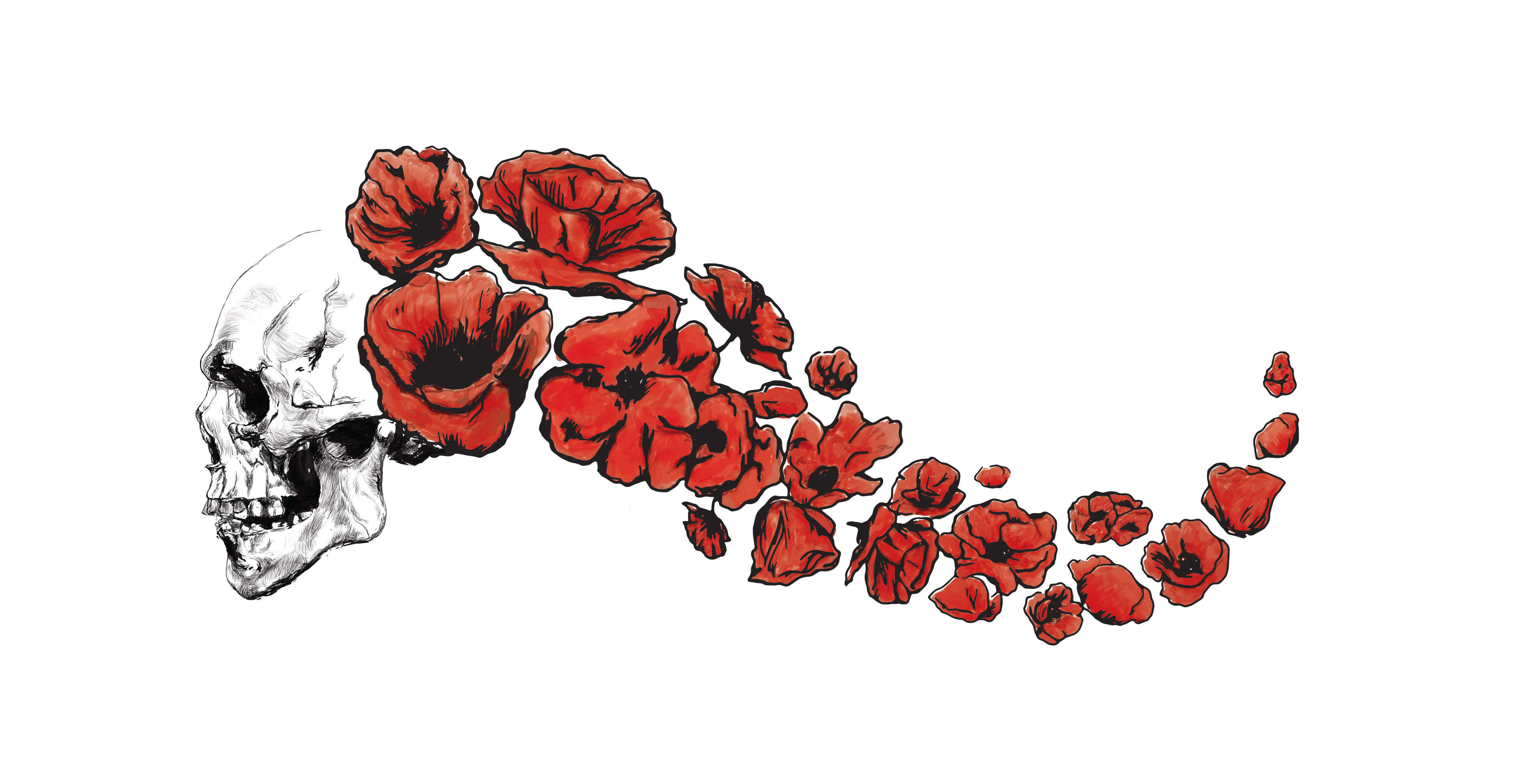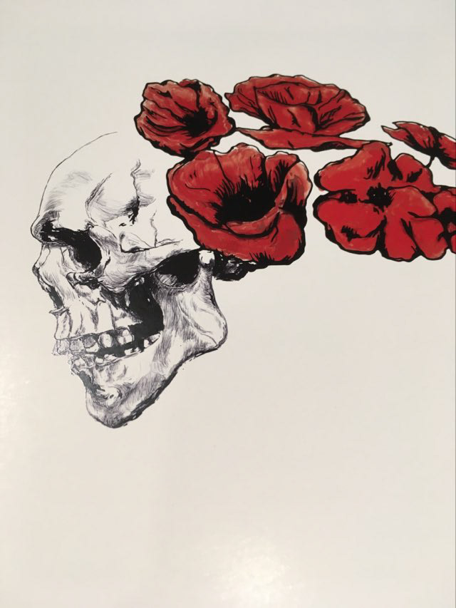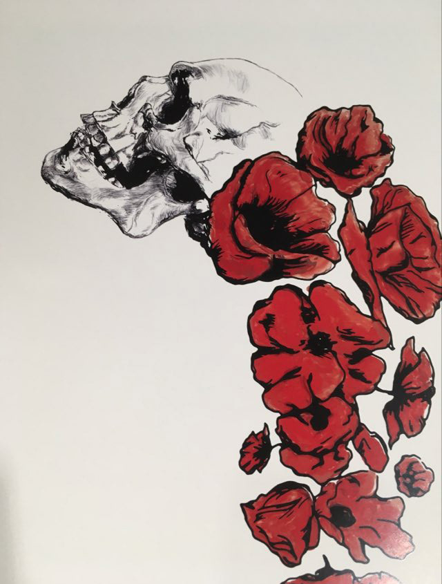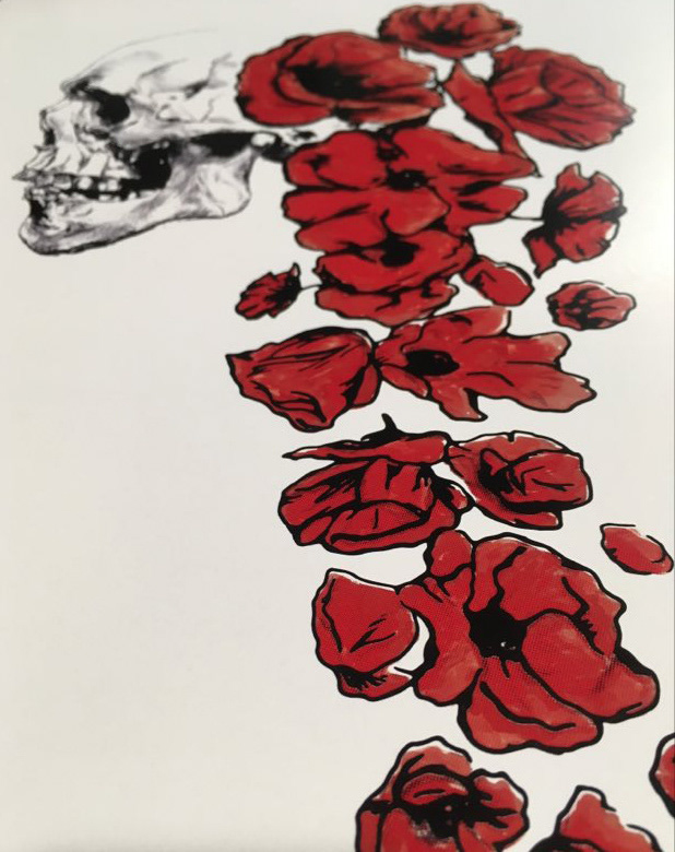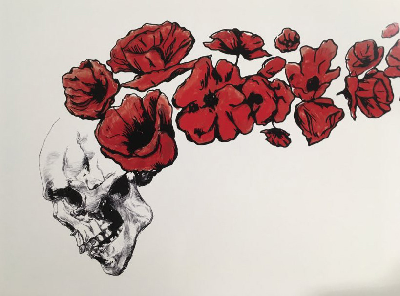Skull and poppy flowers