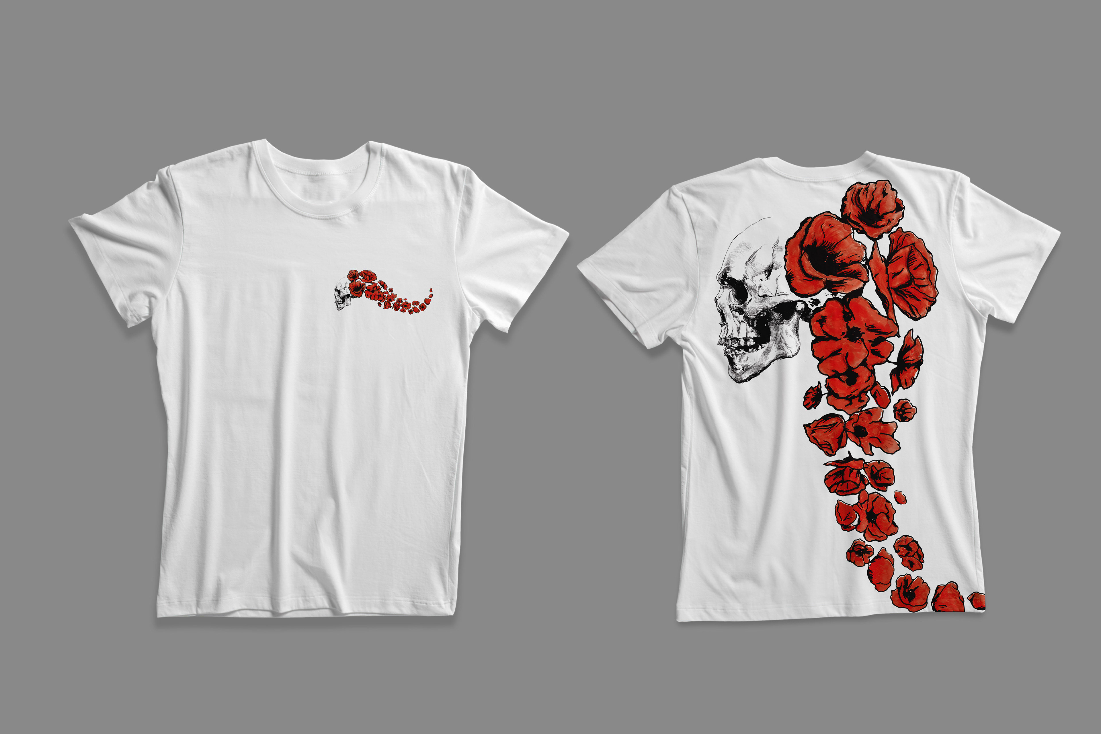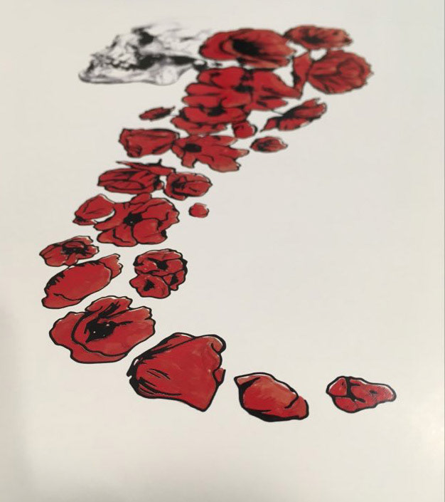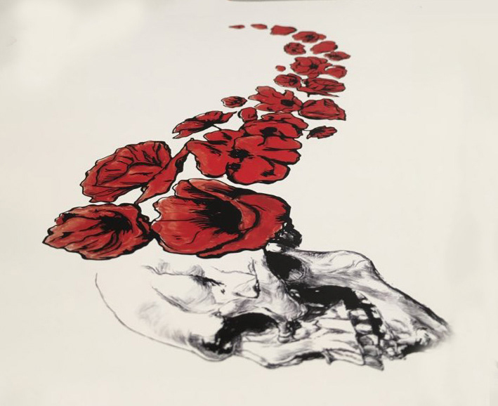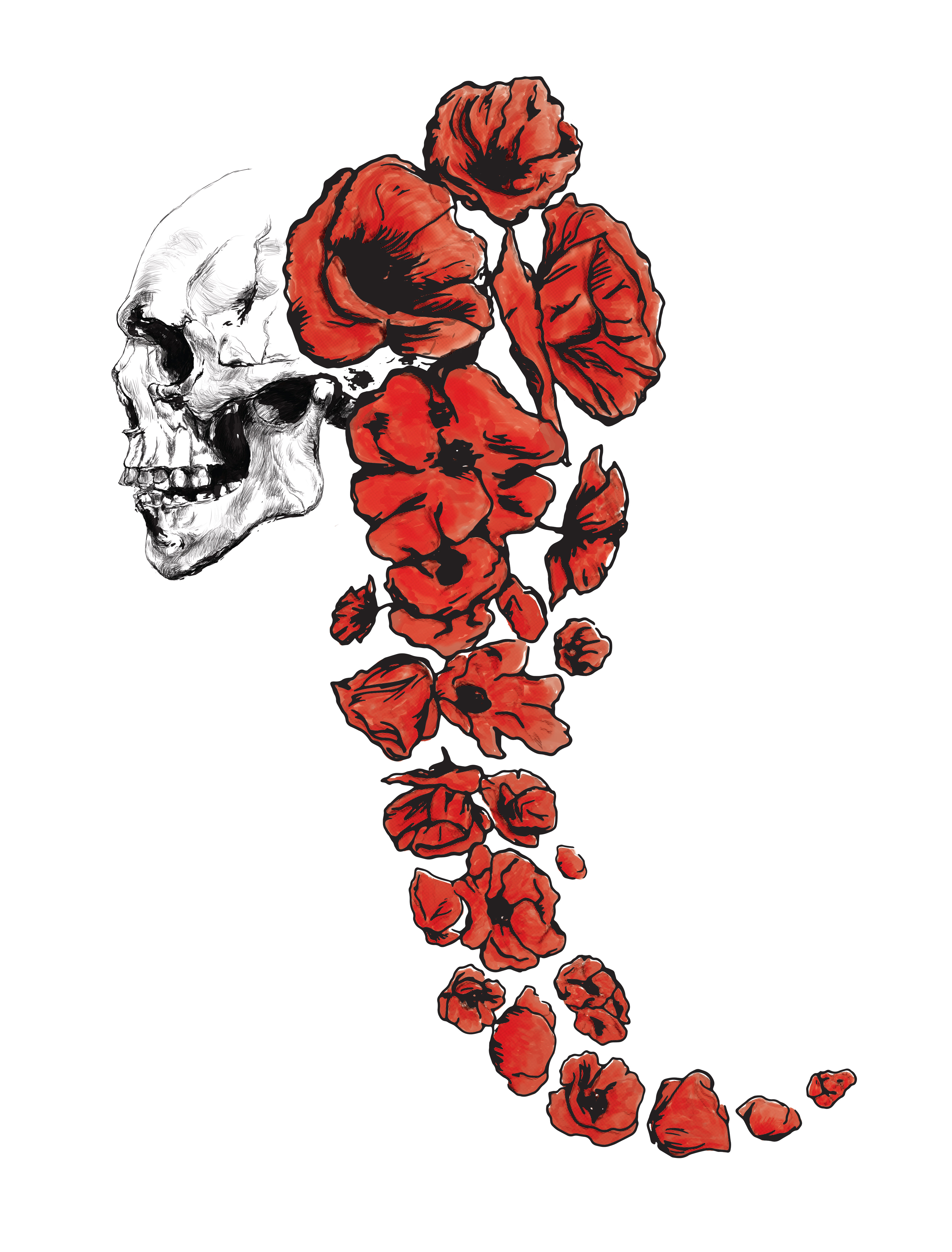 Skull and poppy flowers